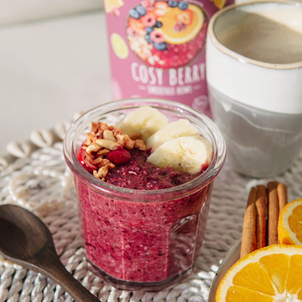 In unserer neuen Geschmacksrichtung haben wir das Beste aus unserem All-Time Favorite "Berry Vibes" genommen und dies ein bisschen weihnachtlicher gestaltet. Mit einem leckeren Geschmack aus weihnachtlichem Früchtepunsch mit Zimt und Orangen zaubert dir Cosy Berry das perfekte Weihnachtsfeeling direkt zu dir an den Frühstückstisch. Mit dem leckeren und intensiven Geschmack von Beeren Granden und Zimt hast du somit jeden Tag ein schmackhaftes und gesundes Frühstück, welches dir durch den Geruch von winterlichem Punsch ein "cosy" Gefühl zaubert.