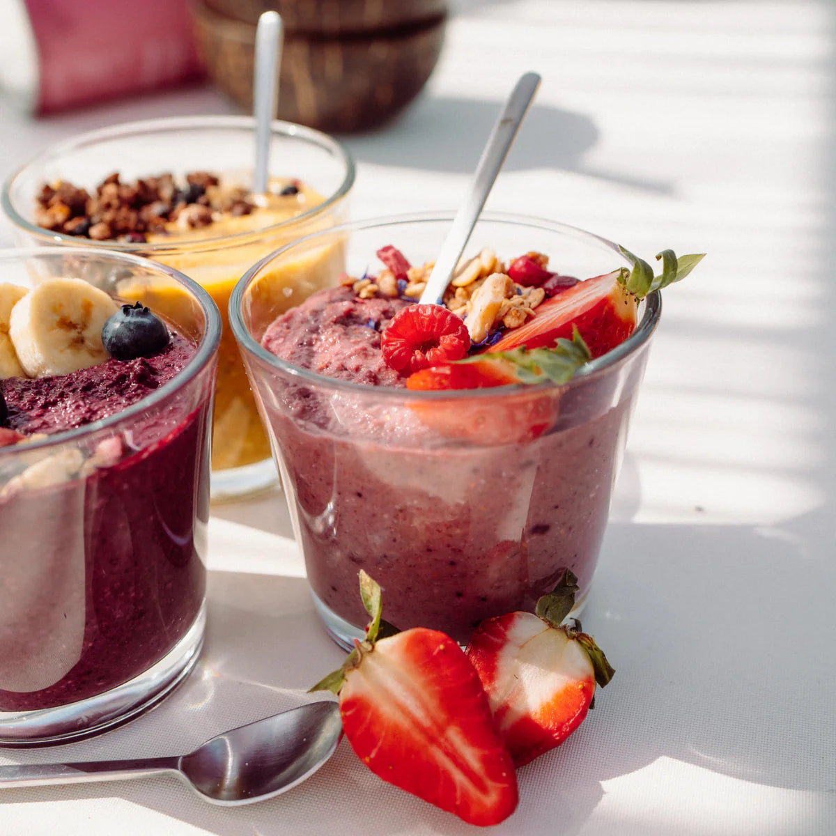 Mit unseren leckeren und knusprigen Toppings wird deine Smoothie-Bowl zu einem optischen, als auch geschmacklichen Highlight. Mit den leckeren Sorten Choco Chill und Berry Boost erhältst du nicht nur super nicen Crunch für deine Smoothie Bowl, sondern auch zusätzliche Vitamine & Antioxidantien, die dir einen Immun-Boost für deinen Start in den Tag geben.