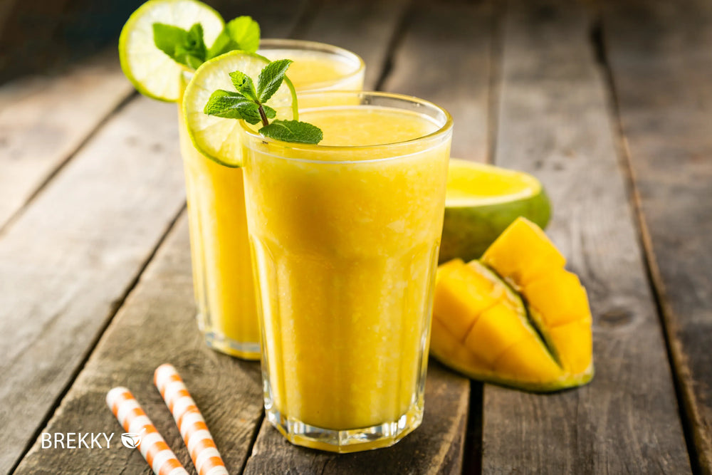 Zubereitung: Alle Zutaten im Mixer pürieren, bis die gewünschte Konsistenz erreicht ist. Dieser Shake zum Frühstück bringt dich direkt in Urlaubsstimmung und versorgt dich mit Vitamin C, Kalium und wertvollen Enzymen aus Ingwer.