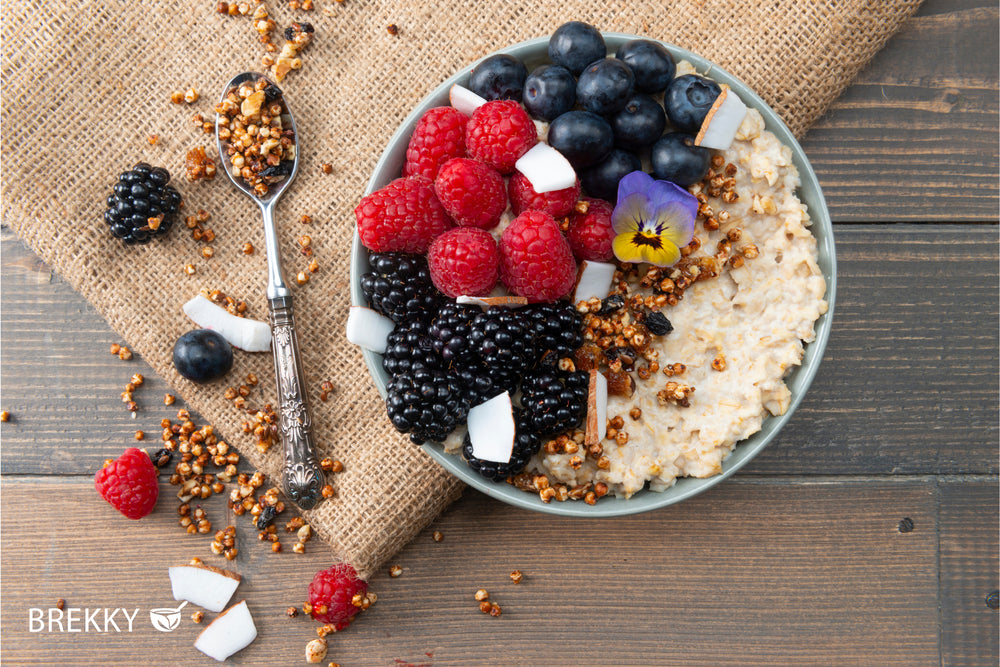 Haferflocken sind reich an Ballaststoffen. Kombiniert mit Milchprodukten oder pflanzlichen Proteinen wird daraus im Handumdrehen ein High Protein Frühstück.