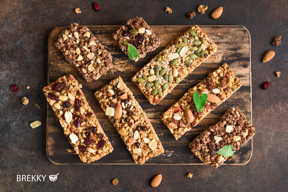 Selbstgemachte Frühstücksriegel sind oft gesünder als gekaufte Varianten und eignen sich sehr gut, um den Proteingehalt zu kontrollieren.