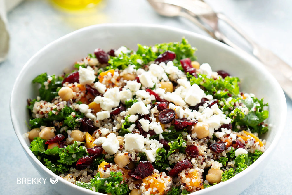 Quinoa ist reich an Proteinen und Ballaststoffen, was sättigend wirkt. Gemüse sorgt für Vitamine und Mineralstoffe.