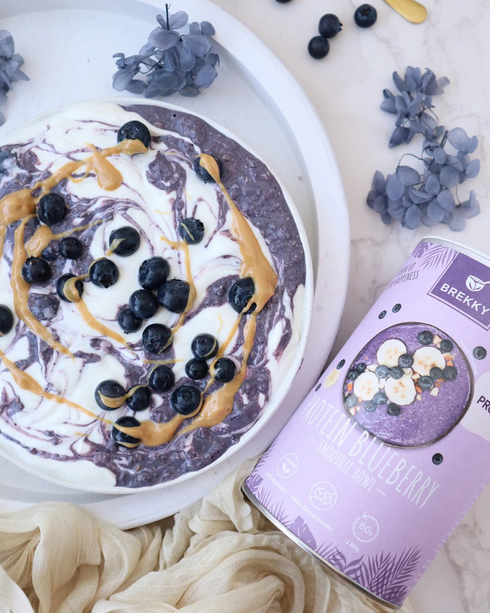 - Eiweißquelle: Proteinpulver, Magerquark, Joghurt oder Sojaquark