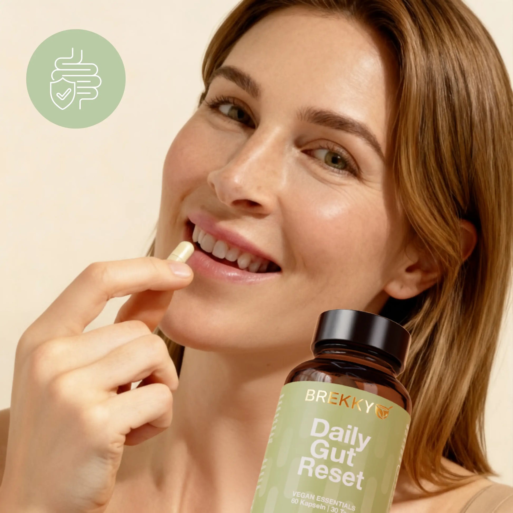 Am besten nimmst du die Kapsel morgens auf nüchternen Magen oder kurz vor einer Mahlzeit ein – so können die aktiven Bakterien und Pflanzenstoffe optimal wirken.